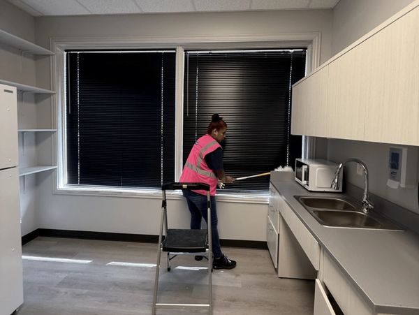 A full deep clean after construction or renovation to prepare spaces for handoff, inspection, or occupancy.